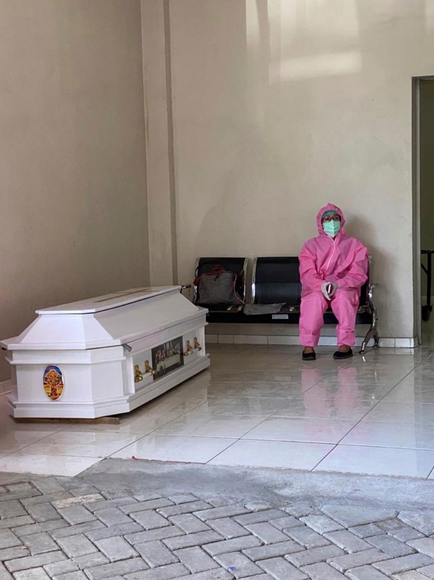 Endonezya’da çekilen bir görüntü uluslararası kamuoyunda gündem oldu… Makassar kentinde çekilen fotoğrafta bir doktor, yaşamını yitiren eşinin tabutu yanında beklerken görülüyor.