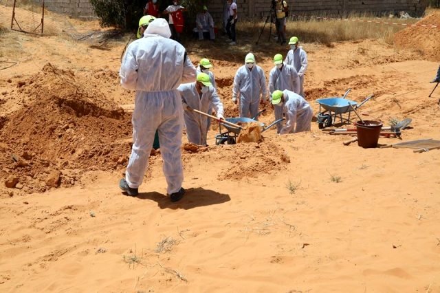 Olay yerine sevk edilen Libya Kızılayı, toplu mezarlarda bulunan cesetlerin kimlik tespiti yapılmak üzere cesetleri Trablus‘taki adli tıpa kaldırıldığını duyurdu. Libya Kızılayı, toplu mezarlardan çıkarılan cesetlerin sayısına ilişkin bilgi vermedi.