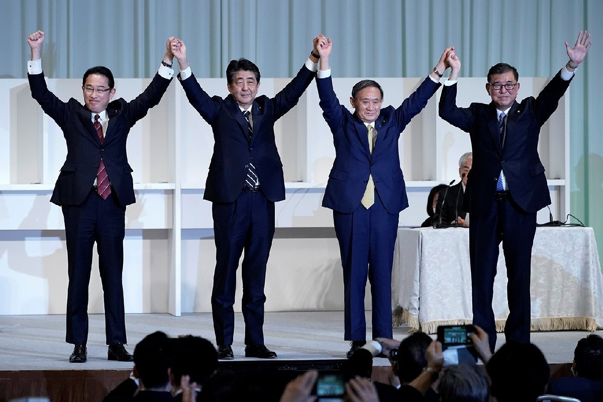 Fumio Kishida, Başbakan Şinzo Abe, Yoshihide Suga ve Shigeru Ishiba sonuçların ardından bu pozu verdi.