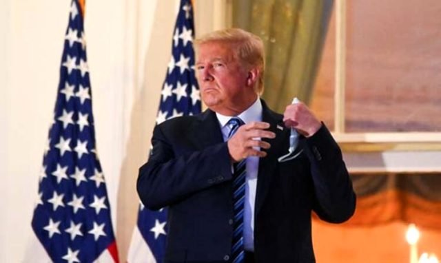 Hastaneden yaklaşık 10 dakikalık bir uçuşun ardından Beyaz Saray’a ulaşan Trump, helikopterden indikten sonra doğrudan içeri girmek yerine, bahçedeki merdivenlerden Beyaz Saray’ın balkonuna çıktı. Balkona çıktıktan sonra yüzündeki maskeyi çıkarıp cebine koyan Trump, balkondaki ABD bayraklarının yanına geçerek gazetecilere poz verdi. Trump’ın fotoğraf vermek için maskeyi çıkarması ve içeri girerken tekrar takmaması ise eleştirilere yol açtı. Trump’ın tedavisi Beyaz Saray içindeki konutunda devam ettirilecek.
