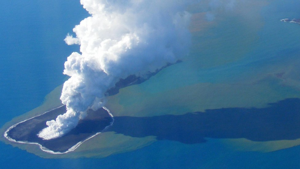 Büyük Okyanus’taki Tonga Takımadaları’nda patlayan bir denizaltı yanardağı, krallığı oluşturan 172 adadan birini batırdı. Yanardağın püskürttüğü lavlardan, batan adanın üç katı büyüklüğünde yeni bir ada oluştu.