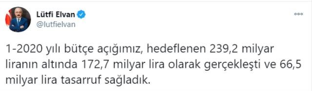 Hazine ve Maliye Bakanı Lütfi Elvan, sosyal medya hesabından yaptığı 2020 bütçe sonuçları değerlendirmesinde 2021 yılı bütçesini iyileştirecek …