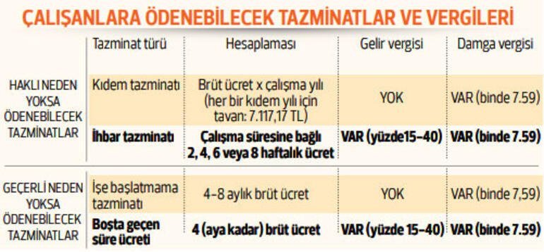 Normalde, çalışanıyla yollarını ayırmak isteyen işverenlerin, çalışanlarına kıdem tazminatını ve -ihbar süresi de kullandırılmamışsa- ihbar tazminatını ödemeleri gerekiyor. (İşverenin haklı nedeni olduğunda kıdem ve ihbar tazminatı ödemesi yapılmıyor.) Kıdem tazminatı için en az 1 yıllık çalışma süresi de gerekiyor.