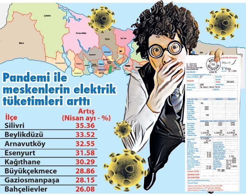 Pandemiye karşı önlemlerin sıkılaştığı nisan ayında ise Silivri’de mesken elektrik tüketimindeki artış yüzde 35.36 gibi oldukça yüksek seviyelere ulaştı. Mayıs ayından itibaren bu kez şehir merkezlerinde, meskende elektrik tüketimi geçen yılın aynı dönemine göre gerilemeye başlarken Çatalca, Silivri, Eyüpsultan, Beylikdüzü gibi ilçelerde yükselme devam etti. Mayısta başta Fatih ve Bakırköy olmak üzere İstanbul’un Avrupa yakasındaki 16 ilçede meskende elektrik tüketimi ise geçen yılın aynı dönemine göre geriledi.