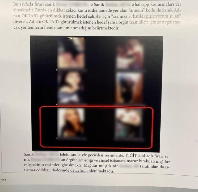 Örgütün turnike sisteminin anlatıldığı bölümde; sanıklardan N.Ö’nün telefonundan çıkan İ.P.Y’ye ait cinsel içerikli görüntüler yer aldı. Piraye kod adlı genç kızın, turnike sisteminde birçok erkekle birlikte olduğu ve görüntülerin de şantaj amacıyla kayda alındığı belirlendi.