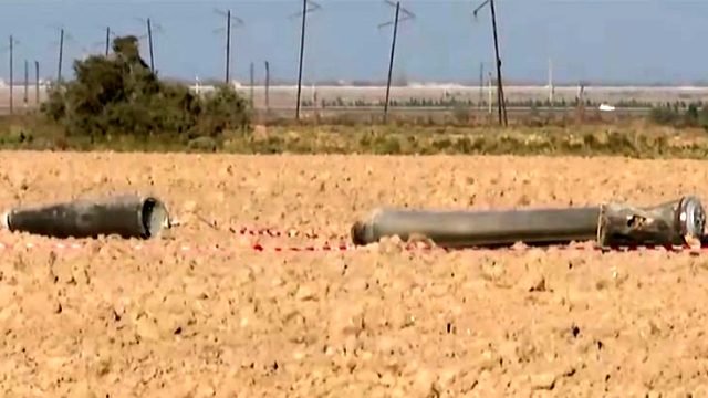 Görüntülerde, ikiye ayrılan füzenin boş araziye düştüğü görüldü. Azerbaycan ordusu füzenin türünü belirlemek için inceleme başlattı.