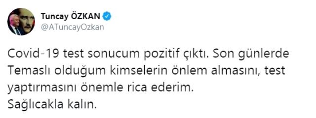 “Kovid-19 test sonucum pozitif çıktı. Son günlerde Temaslı olduğum kimselerin önlem almasını, test yaptırmasını önemle rica ederim. Sağlıcakla kalın.”