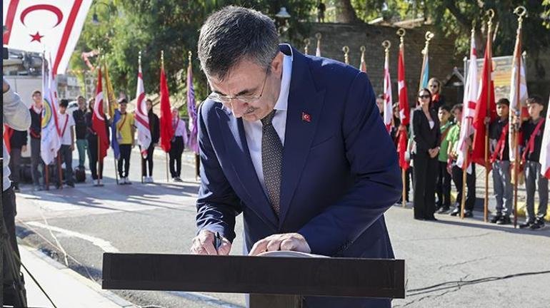 Cumhurbaşkanı Yardımcısı Cevdet Yılmaz, “Tüm dünya bilsin ki Anavatan ve garantör Türkiye Cumhuriyeti, Kıbrıs Türk halkının 20 Temmuz 1974’te, 15 Kasım 1983’te yanındaydı, bugün de yanındadır, yarın ve ebediyen her şartta yanında olmaya devam edecektir.” dedi.