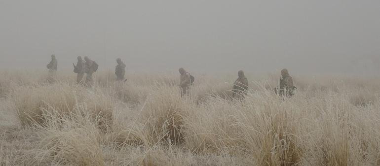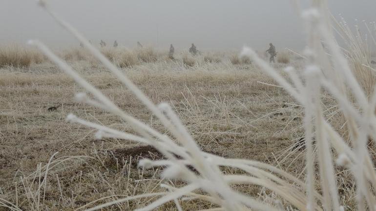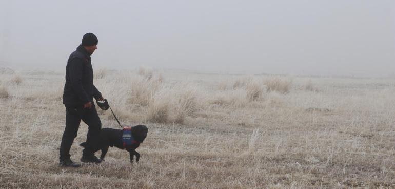 Jandarma iz takip köpeği Tapan’ın da kullanıldığı arama çalışmaları ağır sis altında devam ediyor. (DHA)