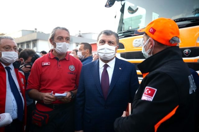 “Bu dönemde salgınla mücadele ederken, vatandaşlarımızdan tedbirlere hassasiyetle uymalarını istiyoruz. Deprem afetiyle mücadele ederken salgına yenik düşmemeliyiz. Şu dönemde çadırlarda yemek yerken veya kurtarma ekipleri de dahil olmak üzere kalabalık ortamların oluştuğunu görüyoruz. Bu dönemde kamu kurumları ve STK’ların personel yoğunluğu sağlaması ama bu personelleri dinlendirerek bunu yapmalarını, salgınla mücadele ederken tedbirlere uyarak işleyişi sağlamaları gayreti içerisindeyiz. Bakanlığımız, AFAD ve UMKE ekipleri, alanda vatandaşlarımıza yoğun bir şekilde maske ile dezenfektan dağıtma gayreti içerisindeler”