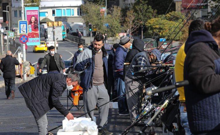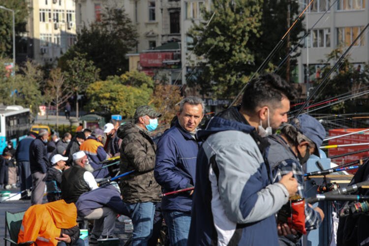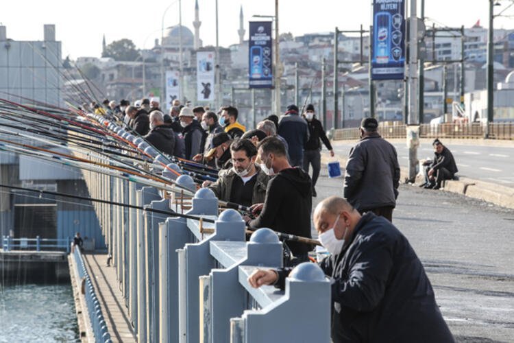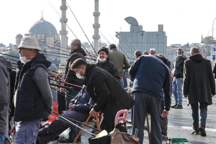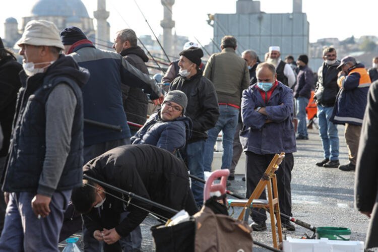 Koronavirüs vakalarının arttığı bugünlerde tedbirler daha artırılırken, Galata Köprüsü’ne gelen balıkçıların sosyal mesafe kuralına uymadığı görüldü.