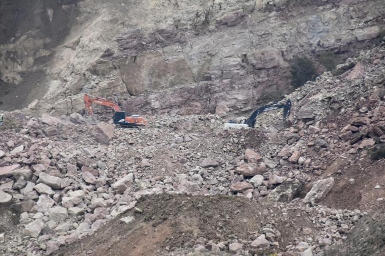 Bölgede güvenlik tedbirlerinin alınmasının akabinde, iş makineleri ile göçük altında kalan kamyon sürücüsü Mustafa Şahin’i arama çalışmalarına başlandı.