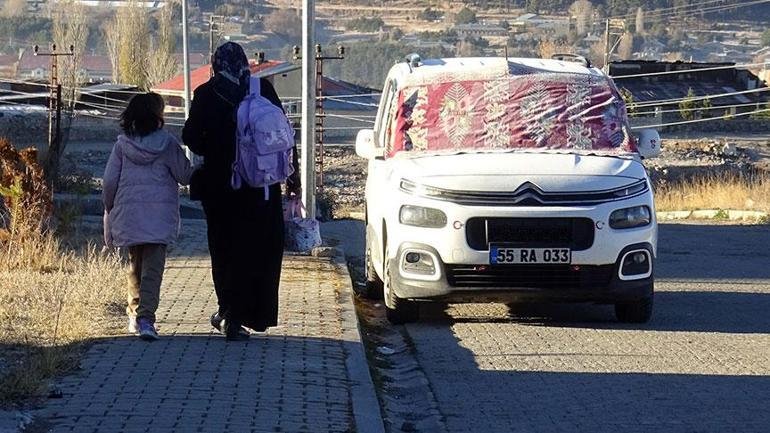 Park halindeki araçların camlarının buzla kaplandığı kentte, kimi vatandaşlar araçlarını soğuktan korumak için üzerlerine battaniye örttü.