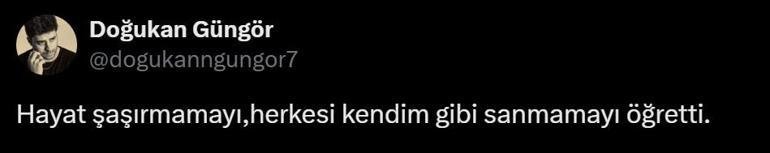 Güngör, ‘X’ hesabından yayımladığı bildirisinde; ”Hayat şaşırmamayı, herkesi kendim üzere sanmamayı öğretti.” sözlerini kullandı.