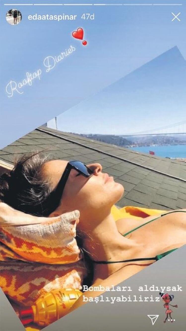 Bronzlaşmak için güneşin altında saatlerce kalan Eda Taşpınar, güneşlenmek için kendine yeni bir çözüm buldu.