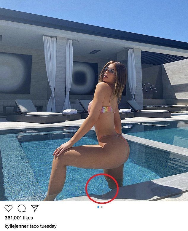 Durduğu havuzun mermerini yamulttuğunu fark etmeyen Jenner, fotoğrafını dakikalar içinde silip, kesilmiş olan yeni halini tekrar paylaştı.