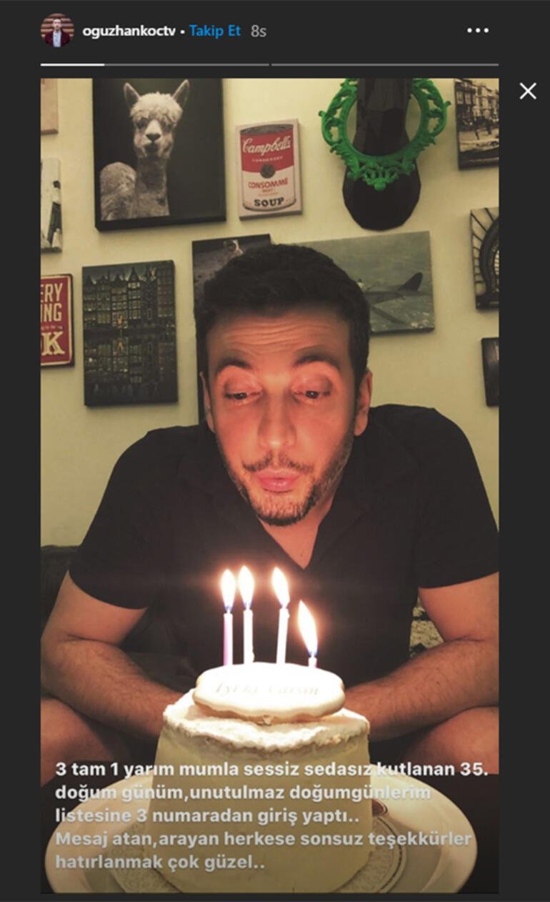 Salgın nedeniyle bir süredir evden çıkmayan Oğuzhan Koç, dün akşam yeni yaşına girdi. Doğum gününü sessiz sedasız kutlayan şarkıcı, bu anları sosyal medya hesabından yayınladı.