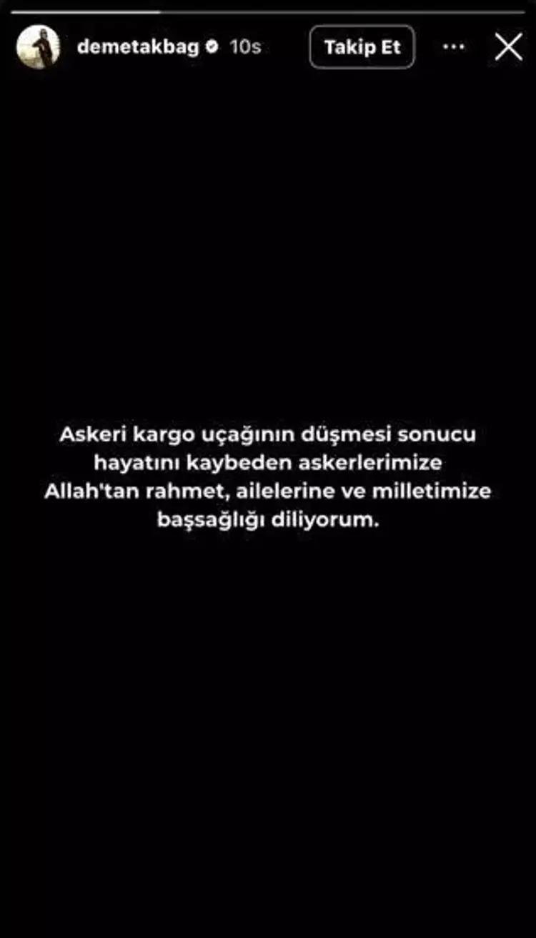 “Askeri kargo uçağının düşmesi sonucu hayatını kaybeden askerlerimize Allah’tan rahmet, ailelerine ve milletimize başsağlığı diliyorum.”