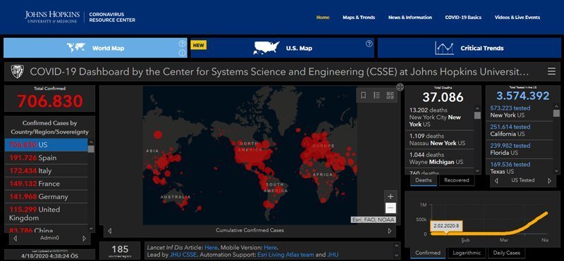 Corona virüsü salgını nedeniyle ABD’den kötü haber gelmeye devam ediyor. Virüsün yeni merkez üssü olan ABD’de ölü sayısı 37 bini aşarken, vaka sayısı da 706 bin 830 oldu.