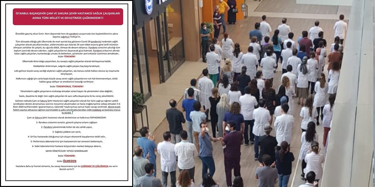 İstanbul Başakşehir Çam ve Sakura Şehir Hastanesi’nde görevli sağlık çalışanları çalışma şartlarındaki zorluklara dikkat çekerek yazılı bir açıklama yayımladı.