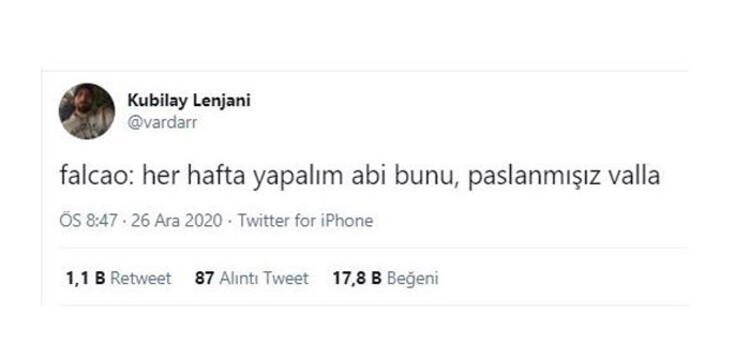 falcao: her hafta yapalım abi bunu, paslanmışız valla
