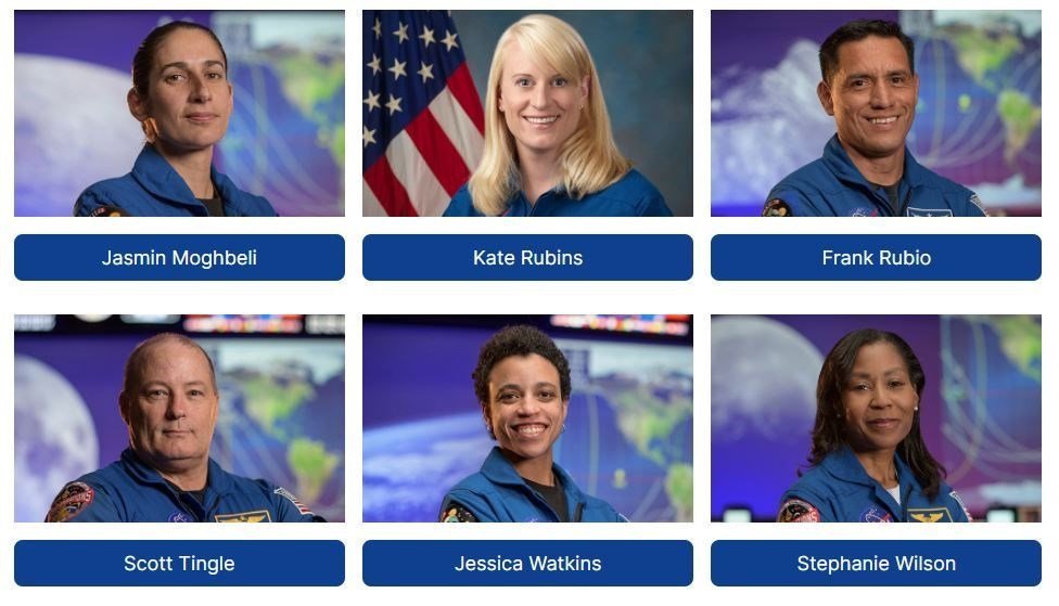 NASA tarafından açıklanan astronotların isimleri şöyle sıralandı: Joseph Acaba, Kayla Barron, Raja Chari, Matthew Dominick, Victor Glover, Warren Hoburg, Jonny Kim, Christina Koch, Kjell Lindgren, Nicole A Mann, Anne McClain, Jessica Meir, Jasmin Moghbeli, Kate Rubins, Frank Rubio, Scott Tingle, Jessica Watkins, Stephanie Wilson.
