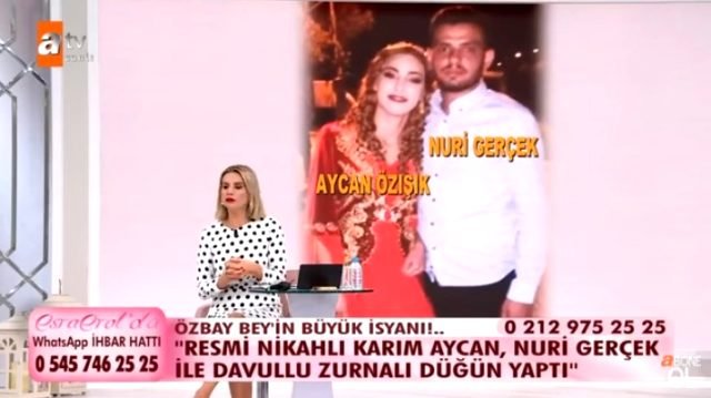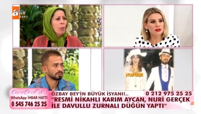 Özgül Özışık, oğlunun yaşadıklarını şu sözlerle anlattı: “Oğlumla Aycan sosyal medyadan tanıştı. Aycan bir gün tüpçünün arabasına binerek şehir merkezine gelmiş otobüs bileti bulamayınca bizi aradı ‘Gelin beni alın’ diye. Meğer benim gelin Aycan başkasıyla nişanlıymış. Ailesi de benden 20 bin TL başlık parası istedi. Aycan’ın ailesi benden 20 bin TL’yi alıp kızının nişanlısının ailesinden aldıkları parayı vereceklermiş. Yani benden alıp onlara verecekler. Ben para vermedim gittim resmi nikah kıydırdım. Kasım ayında kaçıp gelmişti biz şubat ayında düğün yaptık ama gelinim o zamana kadar 3 aylık hamileydi. Mart’ın 9’unda Aycan evden kaçtı. Babası kızının psikolojisinin bozuk olduğunu söyledi. Babasının yanına gittikten 3 gün sonra arayıp ‘Özbay ben seni de çocuğu da istemiyorum buraya gelip imza at çocuğu aldıracağım’ dedi. Sonra da boşanma davası açtı.”