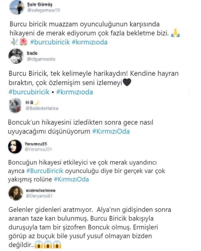 Kırmızı Oda dizisine dahil olan Burcu Biricik, oyunculuk performansıyla izleyicilerden tam not aldı