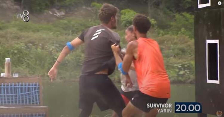 Birbirlerini ittiren yarışmacılar daha sonra birbirlerine girdi. Takım arkadaşlarının sakinleştirmeye çalıştığı ikilinin diskalifiye edilip edilmeyeceği ise merak konusu oldu.