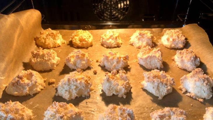 2 yumurtanın beyazı, çeyrek su bardağı toz şeker, 2 su bardağı Hindistan cevizi rendesi, 1 tutam tuz (isteğe bağlı) bu lezzetli kurabiyeyi yapmak için kâfi.