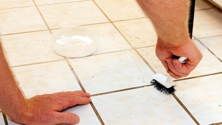 Beyaz sirke tek başına bile tesirli bir temizleyici. Su ile inceltip fayans ortalarına dökün. 15 dakika sonra, kararan yüzeyin akmaya başladığını göreceksiniz. Fırçalayarak büsbütün arındırın.