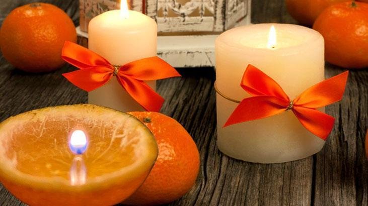 Mandalina kabuğundan mis kokulu mumluk! Ortadan kesin, imgesi çok şık
