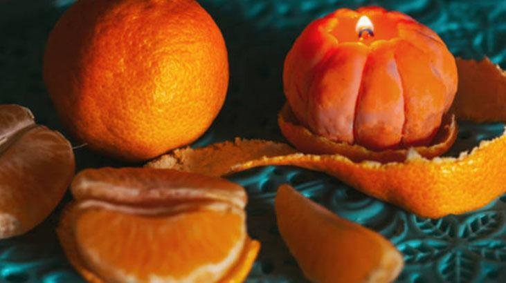 Fitilin yanması birkaç saniye sürebiliyor. Akabinde kapak olarak ayırdığınız öteki kabuğu üzerine yerleştiriyorsunuz. O an mandalinanın kokusu ve sıcak ışık birleşerek küçük bir atmosfer yaratıyor. Mandalina mumluğu yaklaşık yarım saat kadar yanıyor. Bu kısa mühlet bile meskende çok güzel bir ambiyans oluşturuyor.