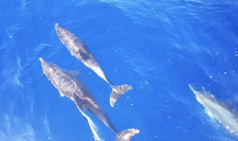 Yunusların tekneyle yarışı kameraya böyle yansıdı